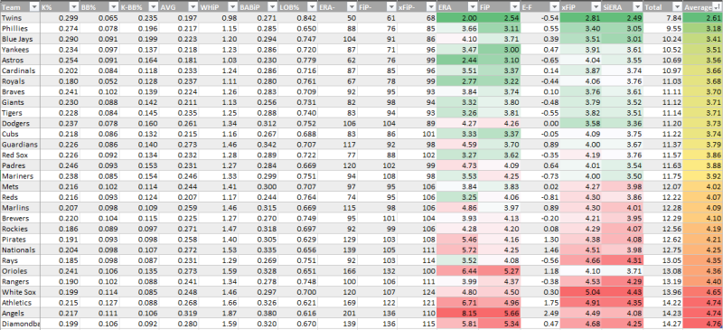 Bullpen SIERA/xFIP/FIP average over the last 30 days in the bullpen graphic (because there’s so much bullpen turnover)