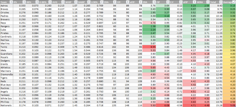Bullpen SIERA/xFIP/FIP average over the last 30 days (because there’s so much bullpen turnover)