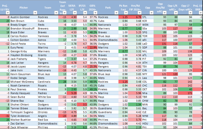 FD: Gausman, Woodruff, Lopez, Senga (the rest of the top 10 are very closely grouped together)
