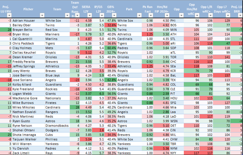 This should be Bailey Ober’s return from the IL. He struck out nine of 33 AAA batters with one walk in a couple of rehab starts. Is he the 4.60 SIERA/4.47 xERA guy that hit the IL with a hip impingement? Is he the guy projected just slightly lower for the rest of the season? Is he completely healthy and the borderline All Star he appeared to be last season?