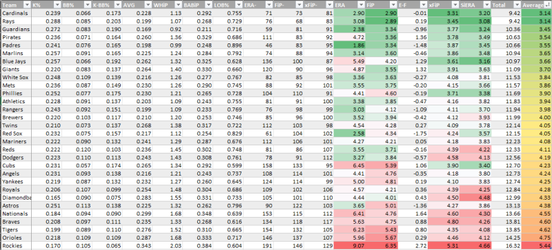 Normally, I'd try to find a way to adjust for lineup changes due to the trade deadline, but it was almost exclusively pitching removed this year and relief pitching at that. I believe only a handful of lineups (D'Backs, Mariners, Astros, Twins) were affected this year.
