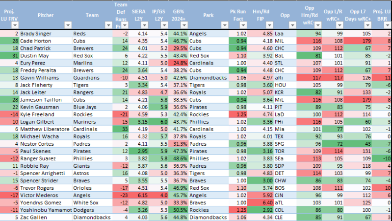 Top Pitcher Matchups (includes defensive, weather and park impacts)