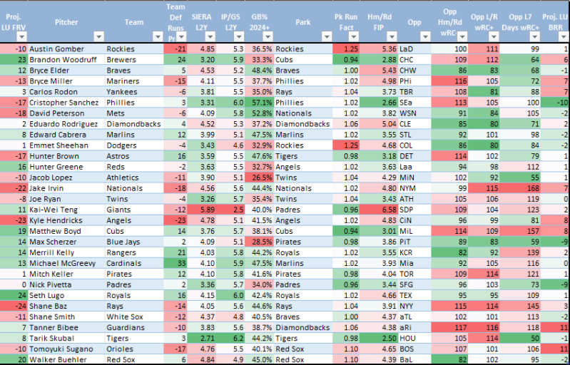 From a daily fantasy aspect, Rodon is still my number two overall in a tough park because the Rays haven’t hit LHP well and should have some strikeouts in the lineup. That said, at the same price ($10K) on either site, I prefer Rodon on FanDuel and think he’s adequately priced on DraftKings. Baz is just outside my top five in a much tougher matchup, but also much cheaper. He’s probably a better value than Rodon on DraftKings for $2.3K less.
