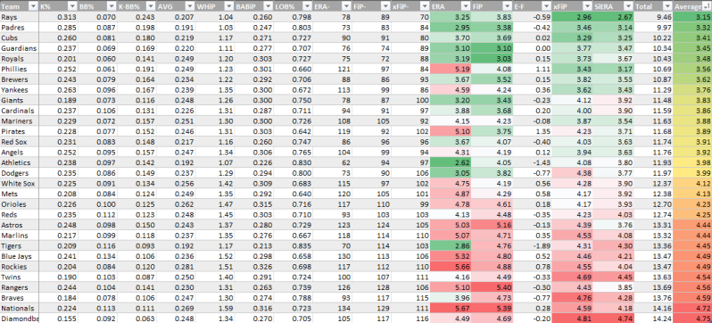 Bullpen SIERA/xFIP/FIP average over the last 30 days (because there’s so much bullpen turnover)