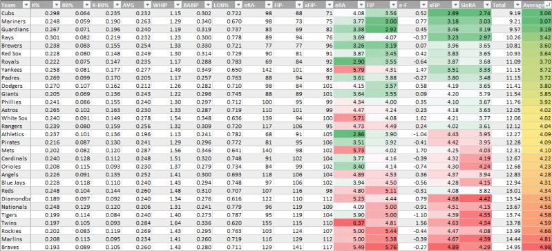 Bullpen SIERA/xFIP/FIP average over the last 30 days (because there’s so much bullpen turnover)