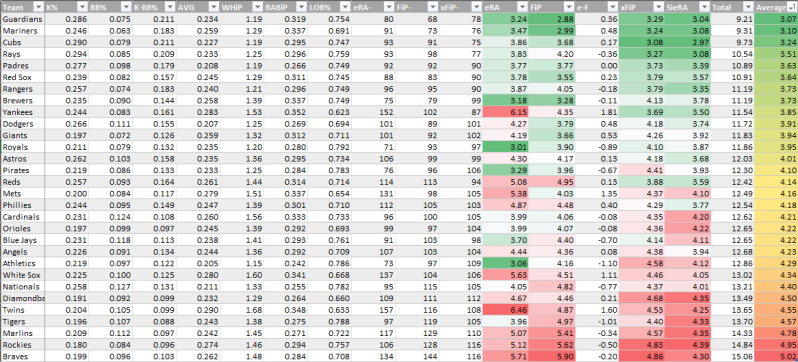 Bullpen SIERA/xFIP/FIP average over the last 30 days (because there’s so much bullpen turnover)