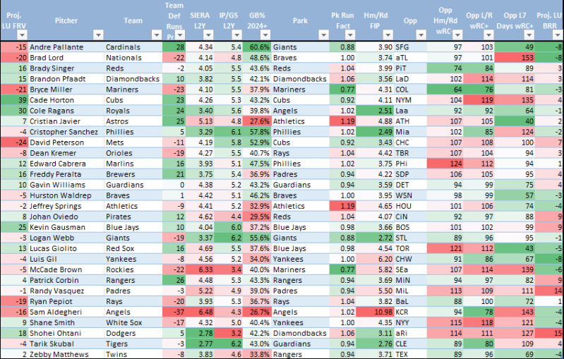 Top Pitcher Matchups (includes defensive, weather and park impacts)