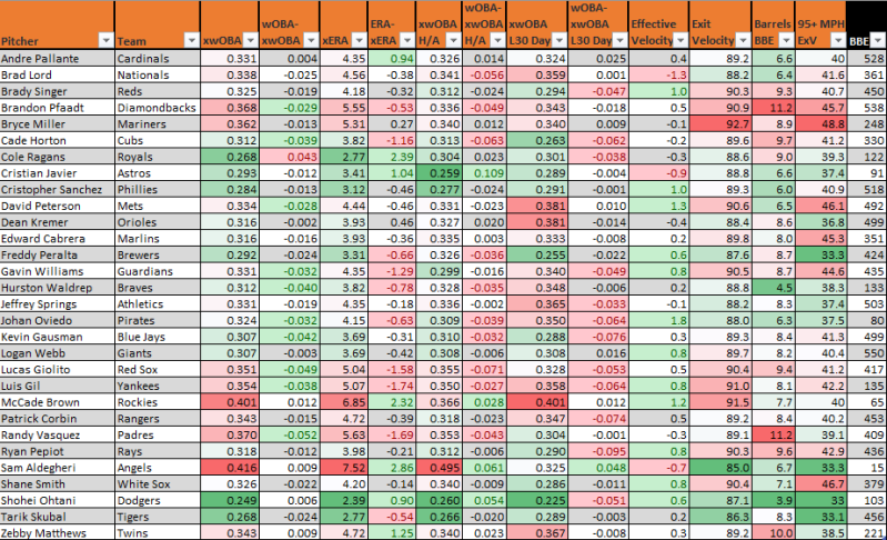 Andre Pallante has eight quality starts on the season, four of them with at least seven innings, but just two of them over his last 13 starts. And, of course, he does that with a 59.5 GB%, but just a 6.7 K-BB%.