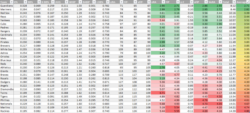 Bullpen SIERA/xFIP/FIP average over the last 30 days (because there’s so much bullpen turnover)